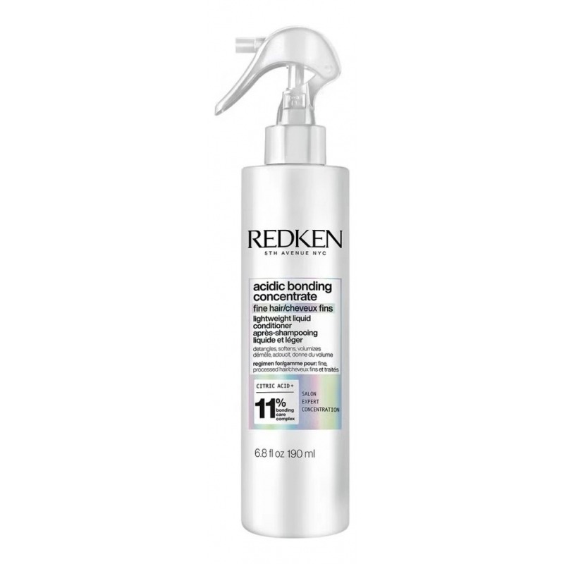 Redken Acidic Bonding Concentrate Lightweight Liquid Conditioner (Лёгкий спрей‑кондиционер для всех типов повреждённых волос) — невесомая несмываемая формула, которая мгновенно разглаживает, увлажняет и восстанавливает волосы без утяжеления. Подходит для ежедневного применения и всех типов волос, включая окрашенные и осветлённые.